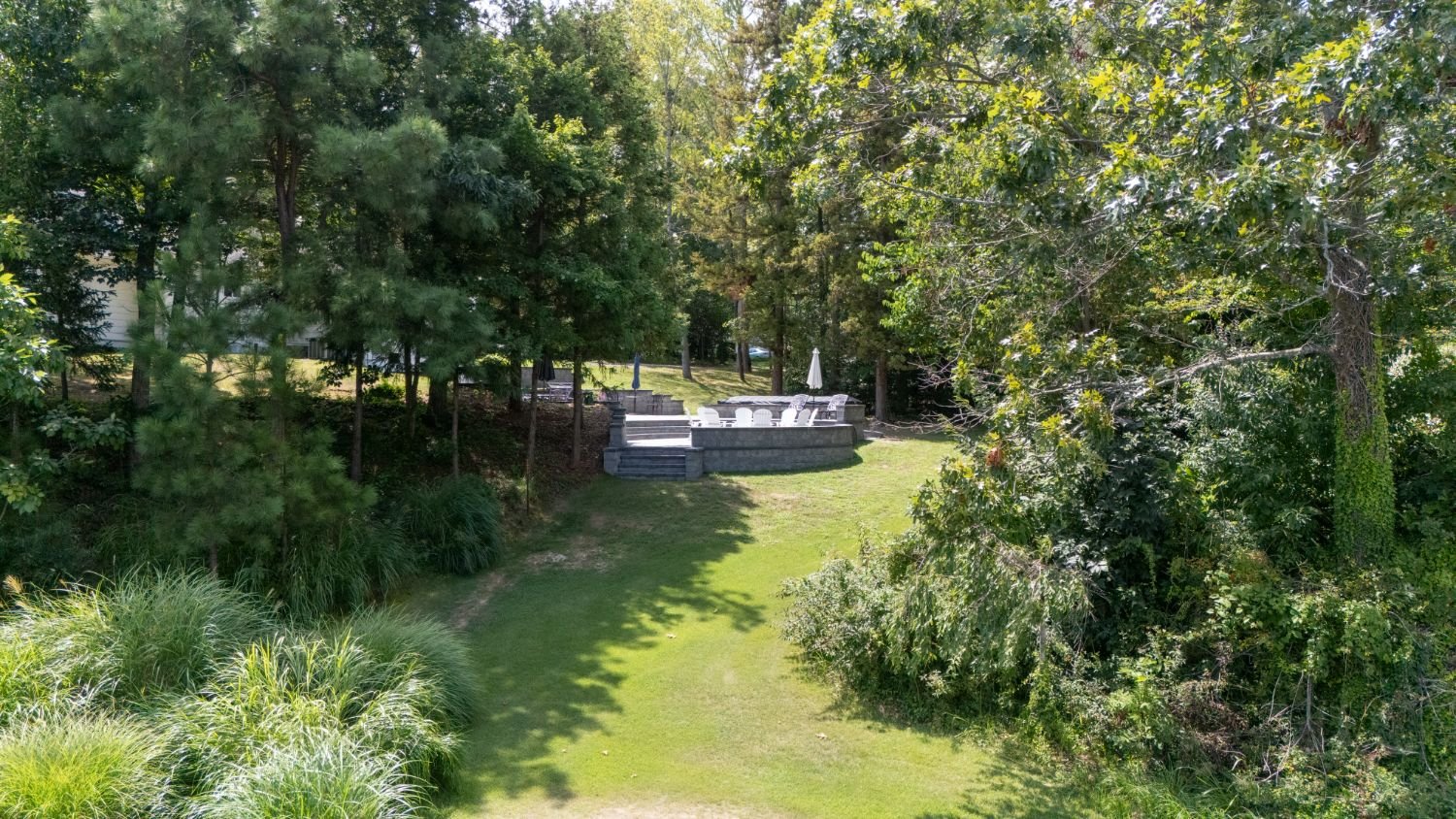 Tiered retaining walls and stepped patio levels were used to create flat, functional areas without disrupting the natural grade.